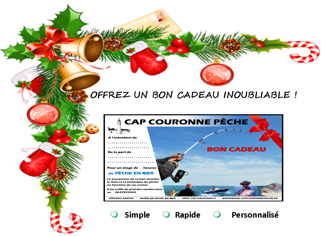 Ce "Bon Cadeau" ou "carte cadeau" vous permet d'offrir rapidement un support papier sur lequel sera marqué l'essentiel des informations concernant le futur stage de pêche en mer.